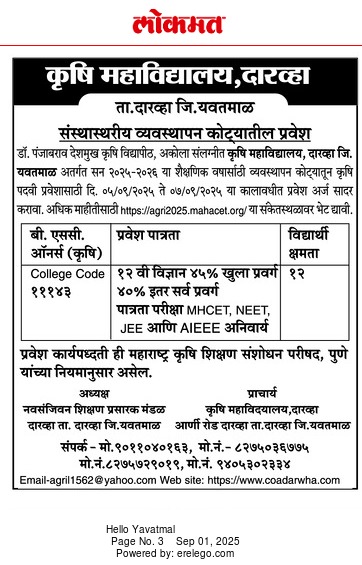 Welcome to official Website of College of Agriculture, Darwha +91 9011 04 0163